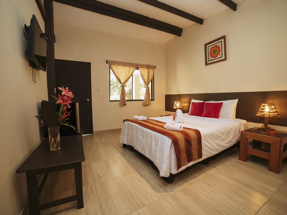 Cada aspecto ha sido cuidadosamente diseñado para brindarte momentos únicos: habitaciones con terraza y vistas inigualables, desayuno tipo americano, piscina, sala de entretenimiento y relajantes paseos en bote por la laguna. Vive la armonía perfecta entre comodidad y naturaleza en uno de los lugares más cautivadores de Tarapoto.